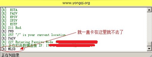 前个星期开始发现FlashFXP总是在登录FTP的时候卡在MLSD,以前一直都可以的,我也没修改过FlashFXP的选项,怪了~于是换了不同版本的,3.0和3.7.8再到4.0,结果问题依旧是卡在MLSD就不能动了,如图。